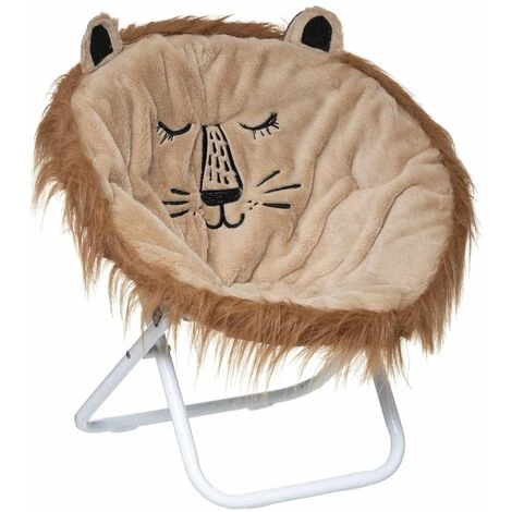 Atmosphera – Fauteuil Lion pour Enfant en tissu marron et beige H 50 cm (-)