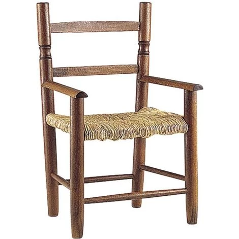 Fauteuil enfant en hêtre teinté verni, siège en roseau.