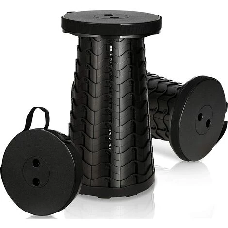 Ultra robuste et durable: Tabouret pliant portable, Noir, Maximum 180 kg. En polypropylène robuste et résistant pour une longue durée de vie et une longue durée de vie. C’est pourquoi nous pouvons vous asseoir confortablement sur le tabouret.