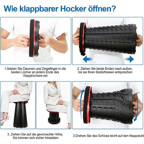 Pliable et réglable en hauteur : avec le système de verrouillage unique, vous pouvez ouvrir ou plier le tabouret pliant en quelques secondes. Il peut être réglé à la hauteur souhaitée (plage de 6 cm à 46 cm). La sangle réglable est facile à porter ou à accrocher à l’épaule, facile à transporter.