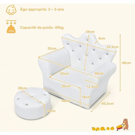 - Matériaux sûrs et confortables — Le corps principal de fauteuil d’enfant est en bois, ce qui est solide et durable. La surface est en cuir PVC, ce qui est non toxique, sûre et respectueuse de l’environnement. A l’intérieur de la chaise se trouve une éponge de haute densité qui permet aux enfants de s’asseoir confortables.