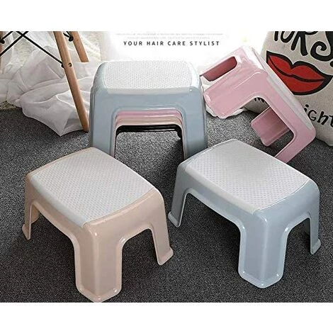 EINEMGELD Tabourets En Plastique Marchepied Tabourets De Siège En Plastique PP Pour La Maison, Le Bureau, Le Salon Marchepied Multifonctionnel Avec Coussinet Antidérapant Roulement Solide Pour Adultes, Bleu Clair