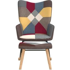 HAPPYSHOPPING Chaise à Bascule Avec Tabouret Patchwork Tissu