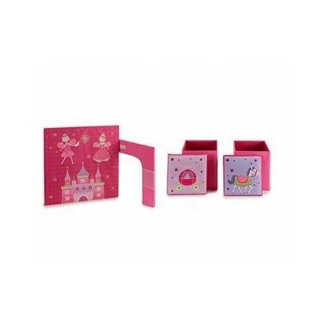Set comprenant une table pliable et 2 tabourets pliables de couleur rose, motif princesse, pour chambre enfant. Ensemble table et tabourets pliants, très pratique pour le rangement.