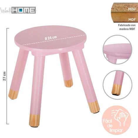 2x selles pour les petits.Les meubles pour enfants sont aussi adorables que ces tabourets le démontrent.Ils ont des dimensions idéales, avec leur diamètre et leur hauteur de siège conçus pour les petits, c’est un ensemble parfait pour eux.Votre enfant peut s’asseoir là indépendamment.Il a un charme de style scandinave.Ils ont des finitions raffinées qui garantissent un aspect particulièrement chaleureux.Sa peinture montre ses pieds dans une chaleur naturelle comme le pin du bois.Couleur rose.Fabriqué dans MDF.Dimensions D. 24 x H. 27 cm. (chacun)